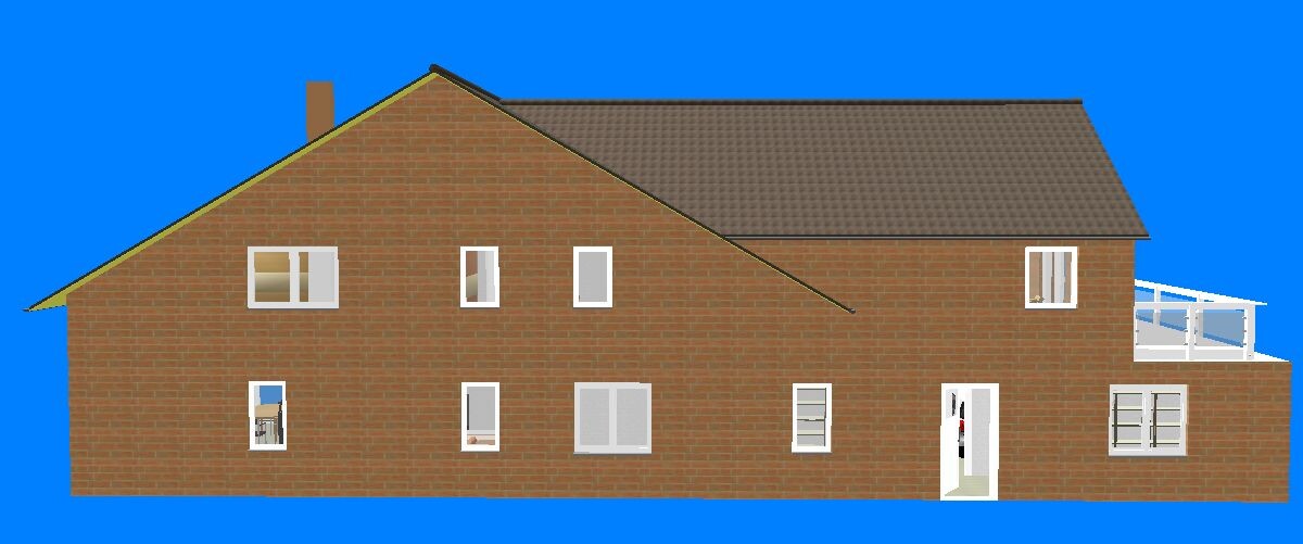 Wobei ich den Partyraum zu den Garagenflächen gezählt habe. Dach jetzt 30°, wobei sich das eigentlich nur im Süden bemerkbar macht.