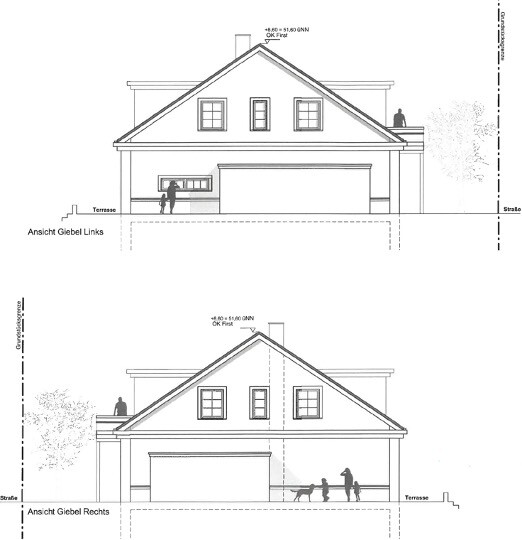 1. Hinsichtlich der Beleuchtung der Hausmitte ist es geplant, auf der Straßenseite (d.h. Westseite) des Gebäudes in der Mitte des Dachs ein größeres Glaselement einzubauen. Links und rechts davon sollen dann zwei Gauben entstehen, die ja auch im Entwurf eingesehen sind. Das Glaselement würde dann den kompletten Luftraum und somit die Hausmitte mit Licht versorgen - nach Aussage vom Architekten wäre der Lichteinfall von diesem Glaselement im Dach circa 8x höher als bei einem normalen senkrechten Fenster. Meinungen hierzu aus dem Forum hochwillkommen!Mit Verlaub, das ist hanebüchene Architektenspinnerei. Wie kommt denn dann das Licht in den Wohnraum? Ist eines der Kinderzimmer für Einstein Junior der an der Lichtkrümmung forscht, oder läuft es wie dereinst bei den Blues Brothers?