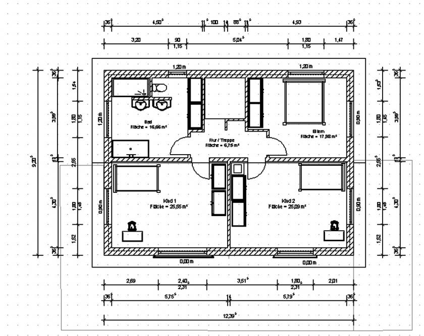 Somersualt25.08.13 23:49Hier ist unser angepasster Hausgrundriss mit Vermaßung (leider ziemlich klein). Die Südseite folgt als Extra-Post, es können wohl maximal 5 Anhänge hochgeladen werden.