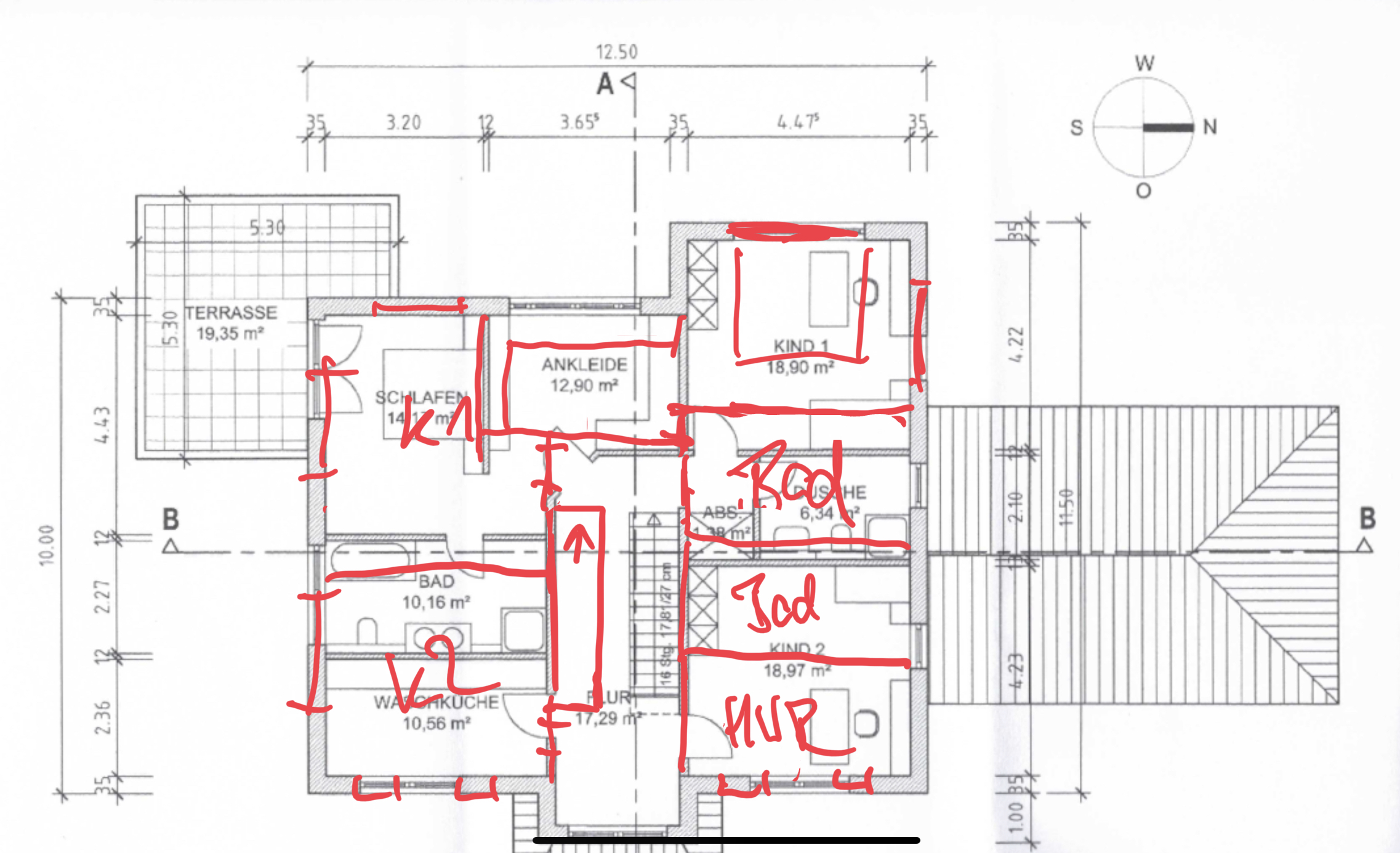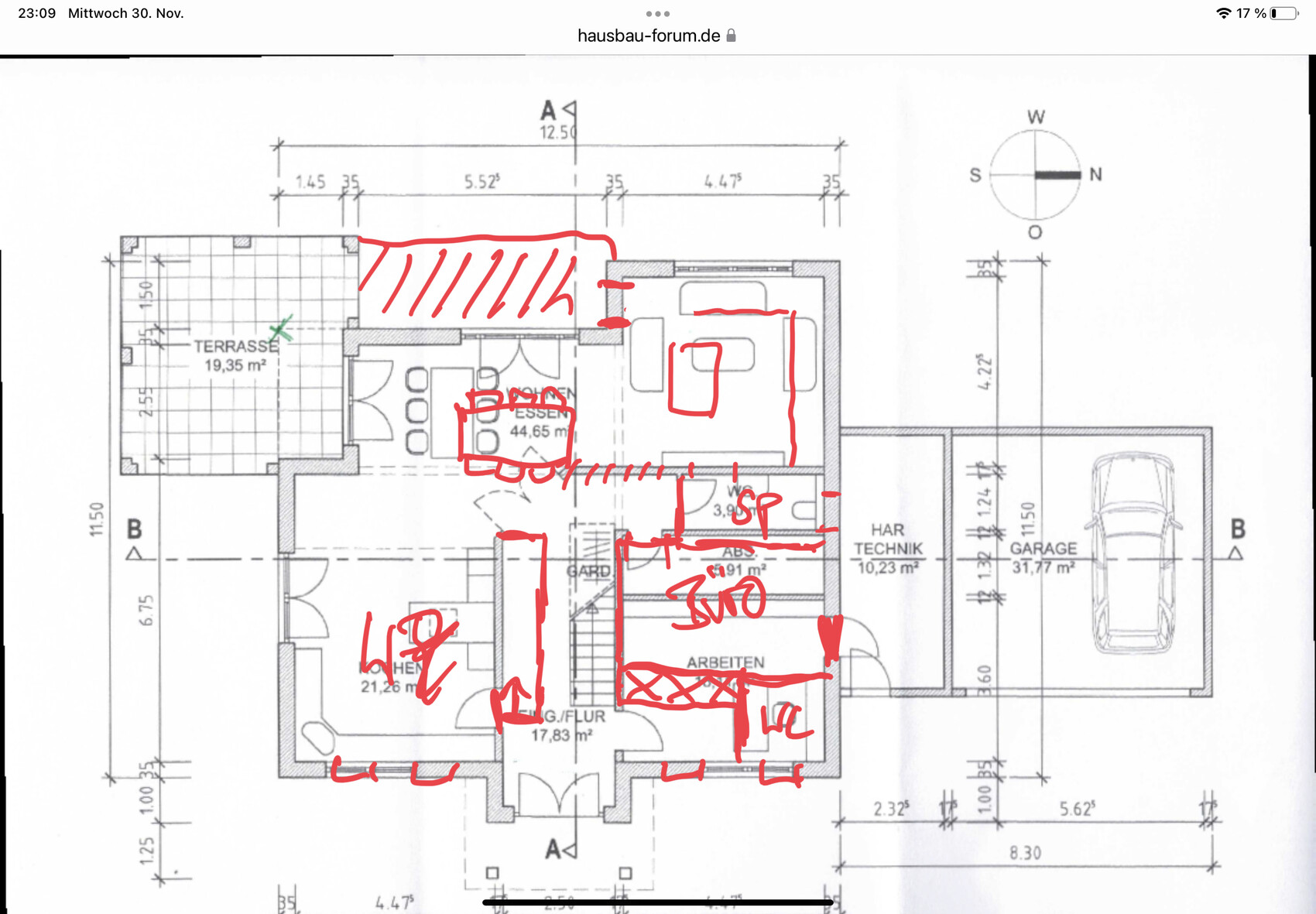 Die Treppe würde mir auch anders rum besser gefallen. Dann läuft man nicht gegen die Wand. Vom WZ direkt zur Treppe.Oh ja.. in aller Eile übersehen. Treppe drehen bietet sich auch an.ypg11.12.22 16:19