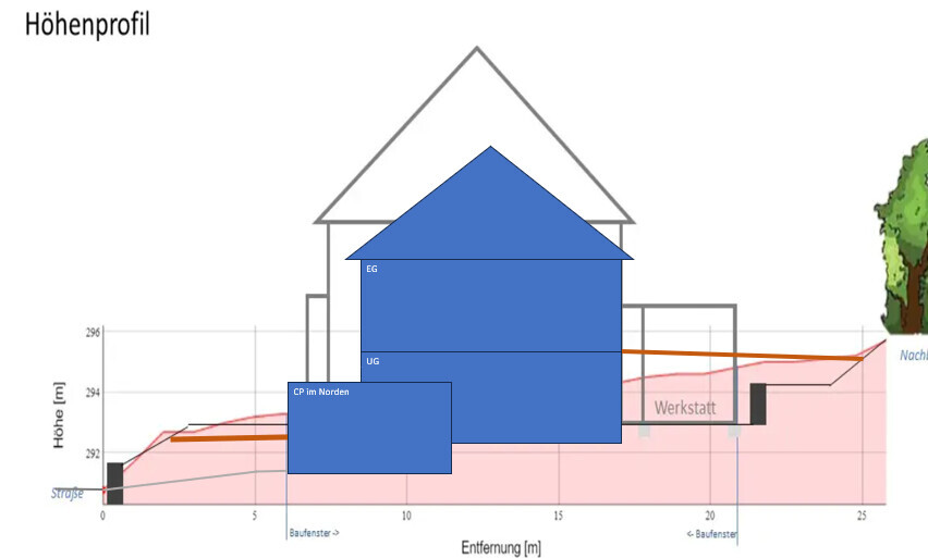 Wo hast Du den Höhenunterschied von 4,9m her?Der Bebauungsplan ist leider von der Qualität nicht besser vorhanden. Die Höhenlinien können wir selber nicht erkennen. Auch leider noch nicht wieder online (Hacker-Angriff SIT).