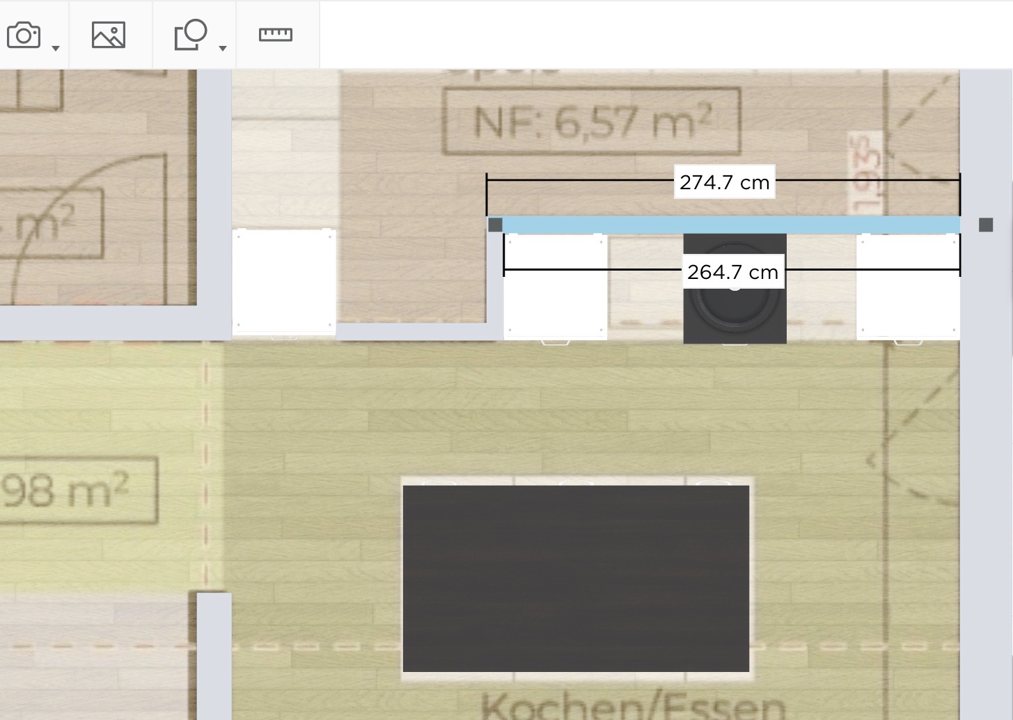 Wo ist denn in der gezeigten Küchenplanung der Backofen?Ich habe meinen Fehler nochmal korrigiert : es sind auf jeder Seite 60-70cm. Mein Fehler war, dass ich zusätzlich einen Backofenhochschrank eingezeichnet habe.