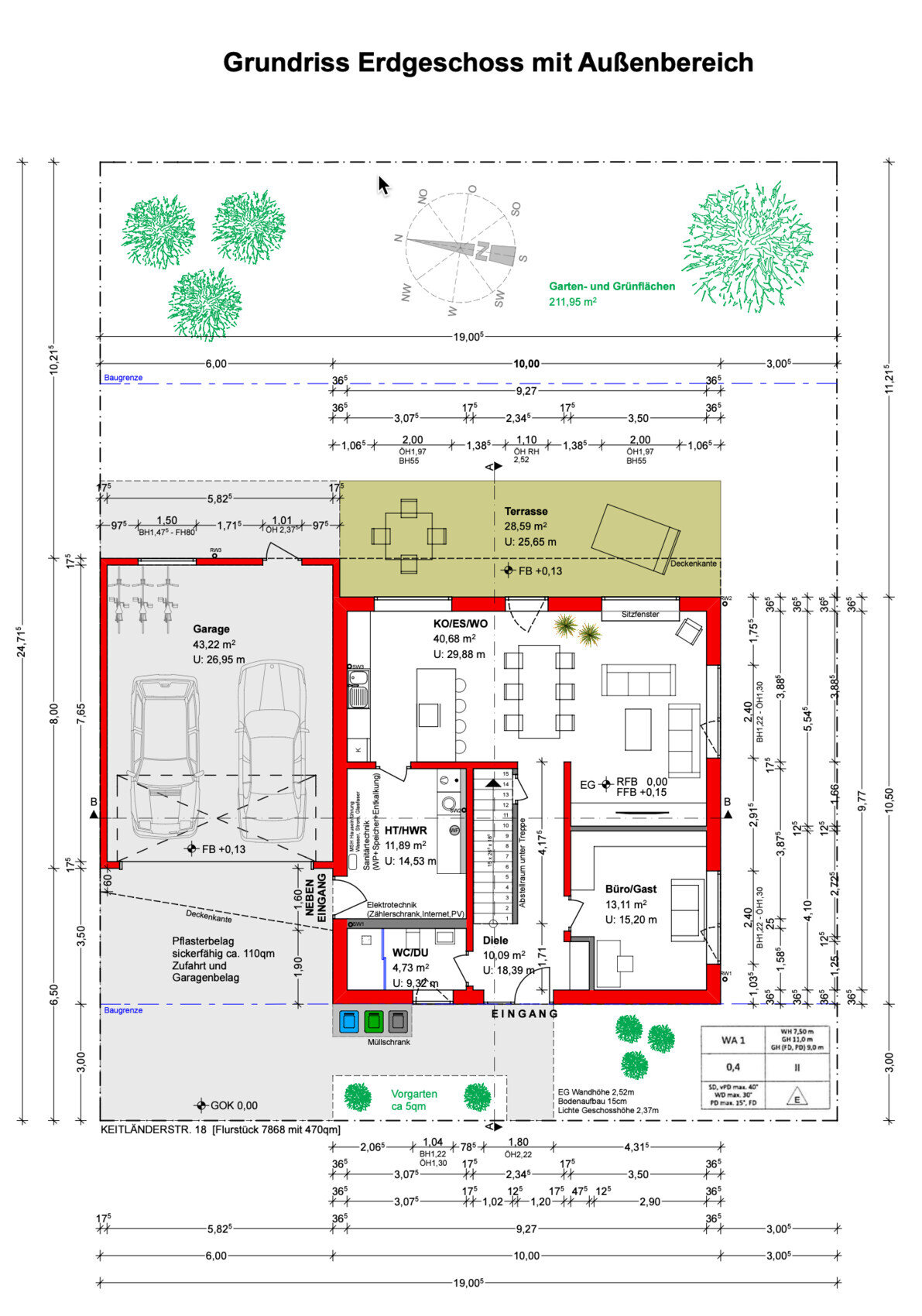 Baufenster = wie im Bebauungsplan eingezeichnet