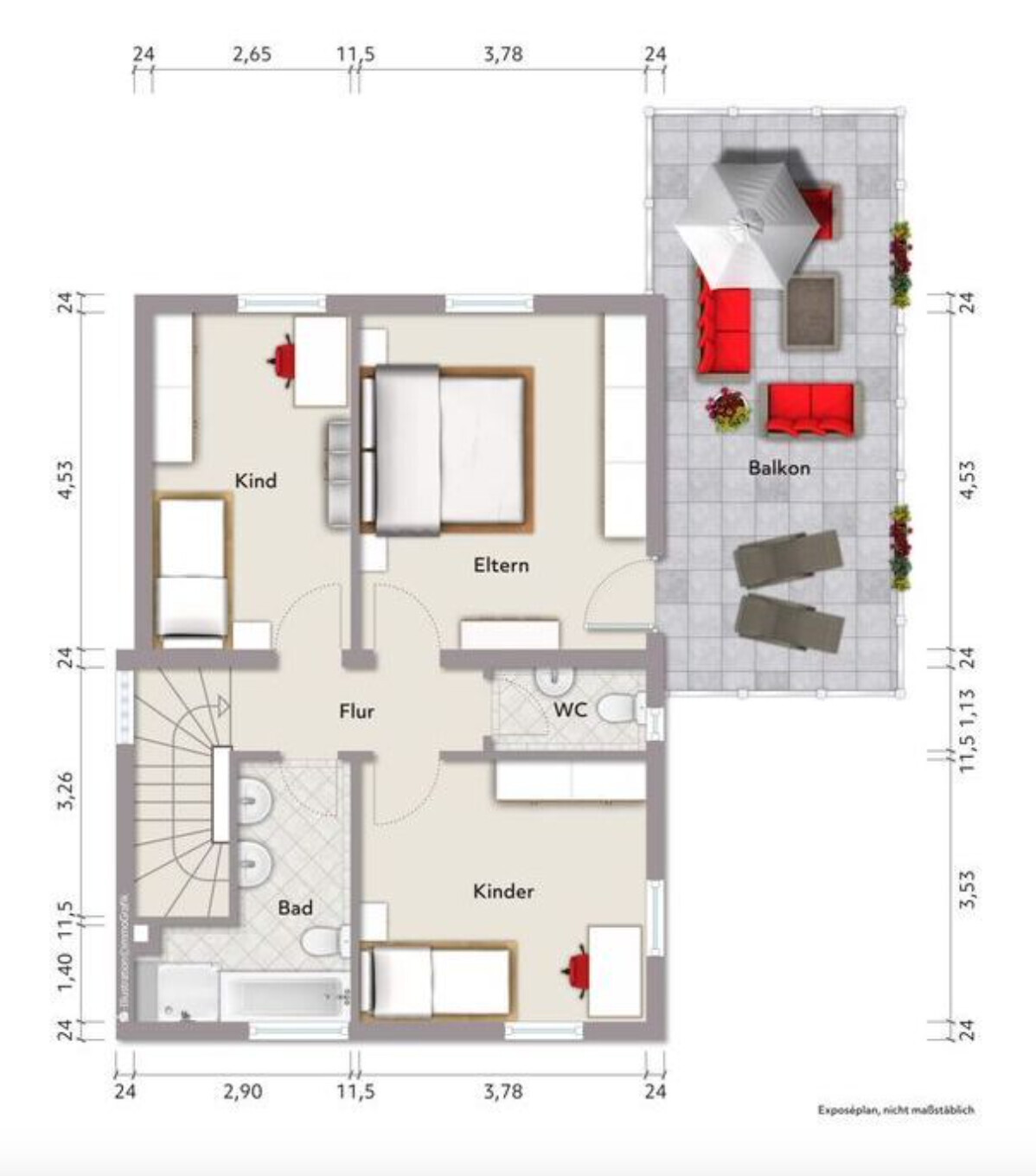 - verwinkeltes unteres Kinderzimmer praktisch nicht nutzbar