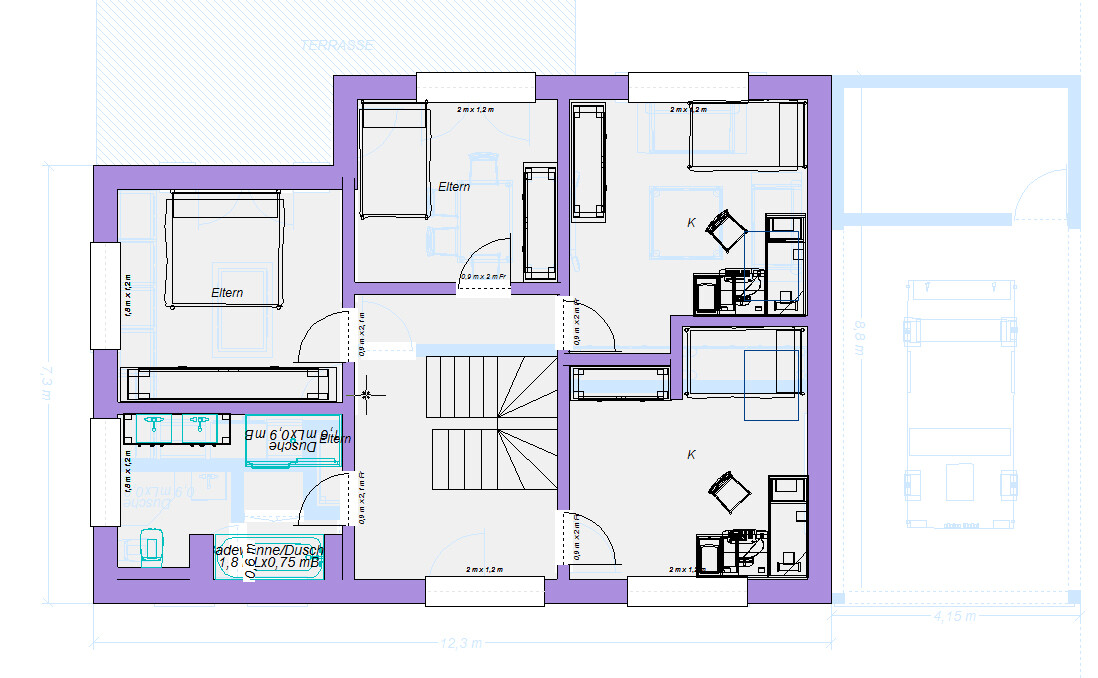 Kannst Du das noch mal anhand Eures Grundrisses aus #1 näher erklären?mich meine den aus 89. Bei 1 geht das mit der Treppe natürlich nicht, wenn da ein Zugang zur Küche sein soll. Sag ja, eine Kröte wird man schlucken müssen. Der aus 89 sieht deswegen die Garderobe auf der anderen Seite vor. Die Ecke im Büro ist zwar nicht optimal, aber so ausgemessen, dass da unser Technikschrank mit Drucker und co hinpasst, was cool ist, denn wir drucken oft mal was übers Handy und hüpfen nur schnell rein.