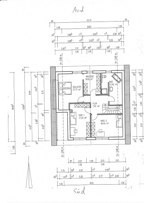 Das Haus soll 2 Meter breiter oder länger werden? Dann ergibt sich doch ein ganz anderer Grundriss, oder sehe ist das falsch?