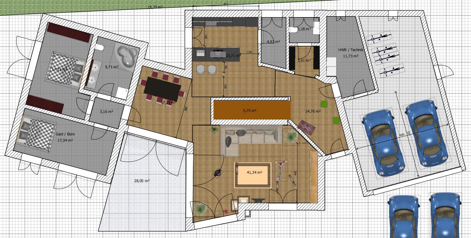 Bzgl. Grundstücksbemaßung: Vielleicht sollte ich doch noch mal warten bis die schlussendlichen Maße vorliegen.