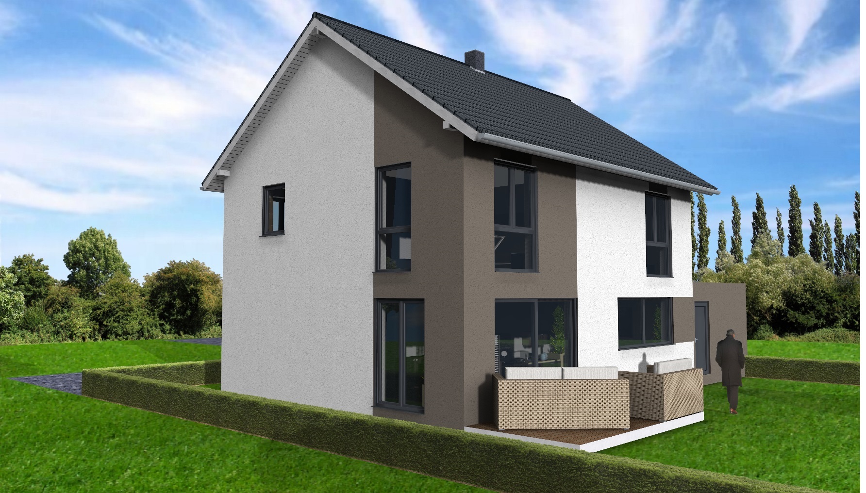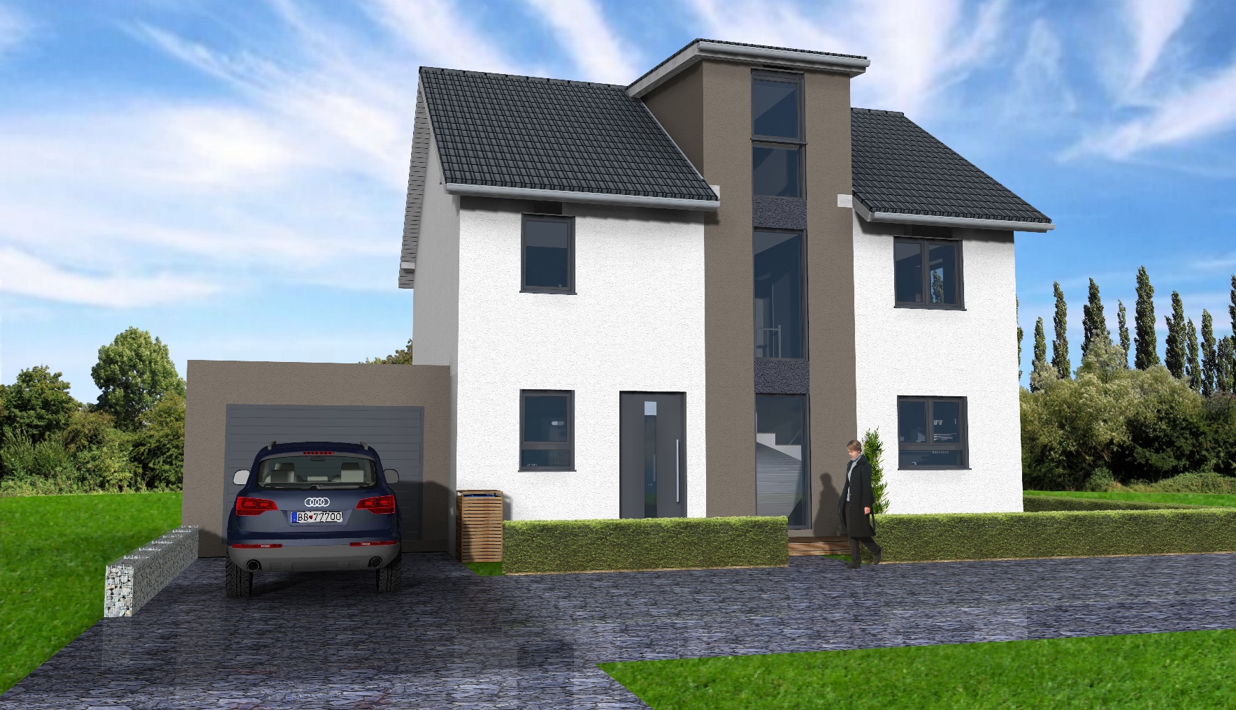 Im Anhang noch mal 2 Bilder von außen, die anderen Bilder wirken von außen wirklich nicht so schön. Auf der richtigen Visualisierung gefällt mir das Haus aber gut. Auf der Visualisierung ist allerdings die vordere Gaube noch zu hoch.