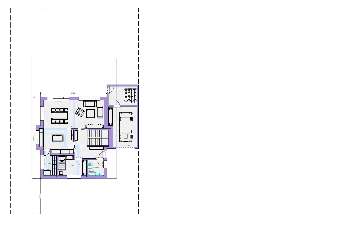 Das Baufenster ist der rötliche Rahmen - 18 x 16 hab ich erahnt. Ist das korrekt? Wenn Du Dein Häuslein da bis ganz hinter schiebst, wegen der Autos, dann passt die Terrasse m.E. schon nicht mehr ins Baufenster. Manchmal sind die Bauämter da großzügig aber manchmal eben auch nicht. Deswegen solltest Du den Außenbereich unbedingt mit planen (lassen).