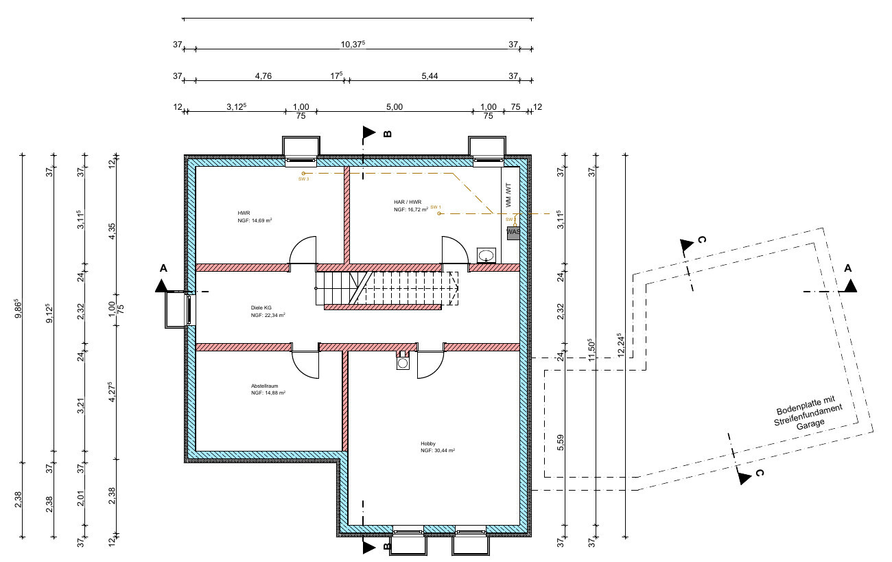 Wir haben aber den Grundriss der Garage sowie die Lage von Haus und Garage zueinander nochmal geändert.