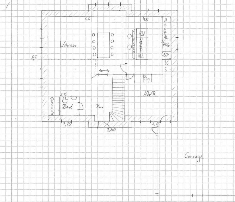 Vielleicht nimmt man das Büro nach oben und öffnet die Küche wenigstens bis ins Esszimmer. Bei Seitenwechsel auf die Südseite wäre dann noch eine Speisekammer drin. Allerdings der Zugang Hauswirtschaftsraum futsch.