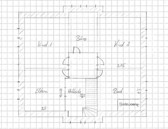 Am besten, du nimmst als Wand nen dicken Strich, oder einen dreifach-Strich, also in etwa 15-20cm... als Skizze wohlgemerkt