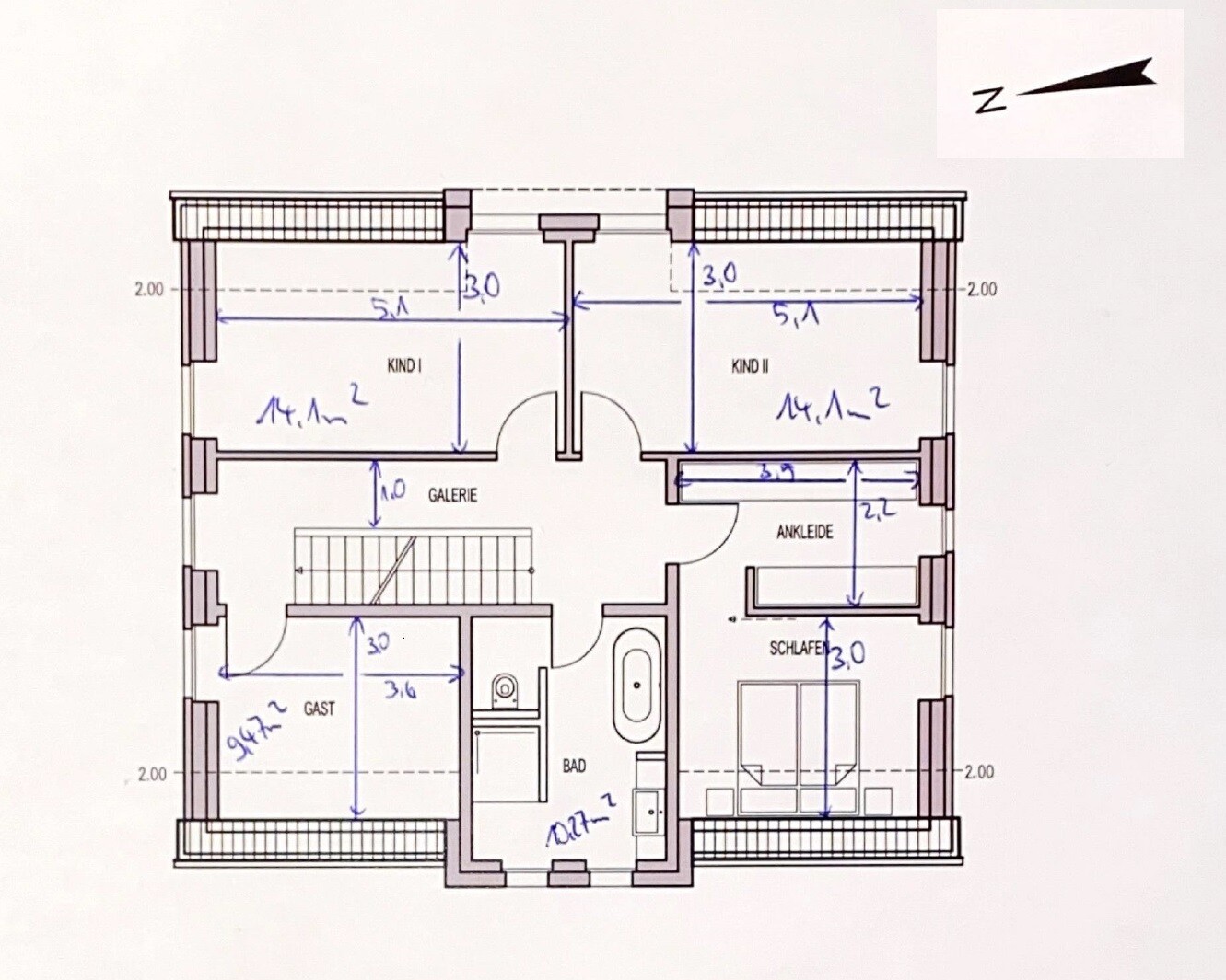 Wart Ihr schon in Musterhäusern? Sowas, was Ihr hier skizziert, gibt es bestimmt irgendwo ähnlich direkt zum anschauen.