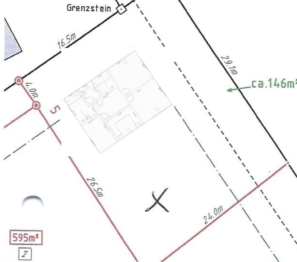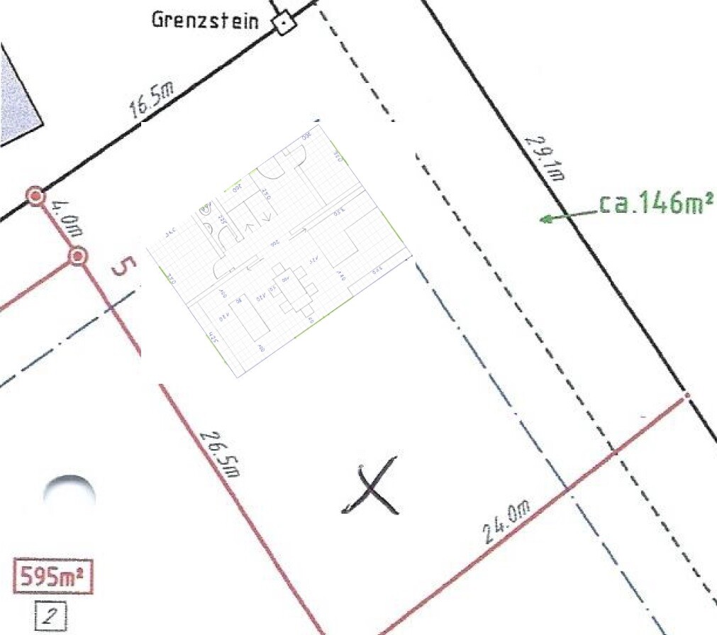 Größe des Grundstücks: 704 qm (davon 146 qm Grünstreifen an der Ostseite)