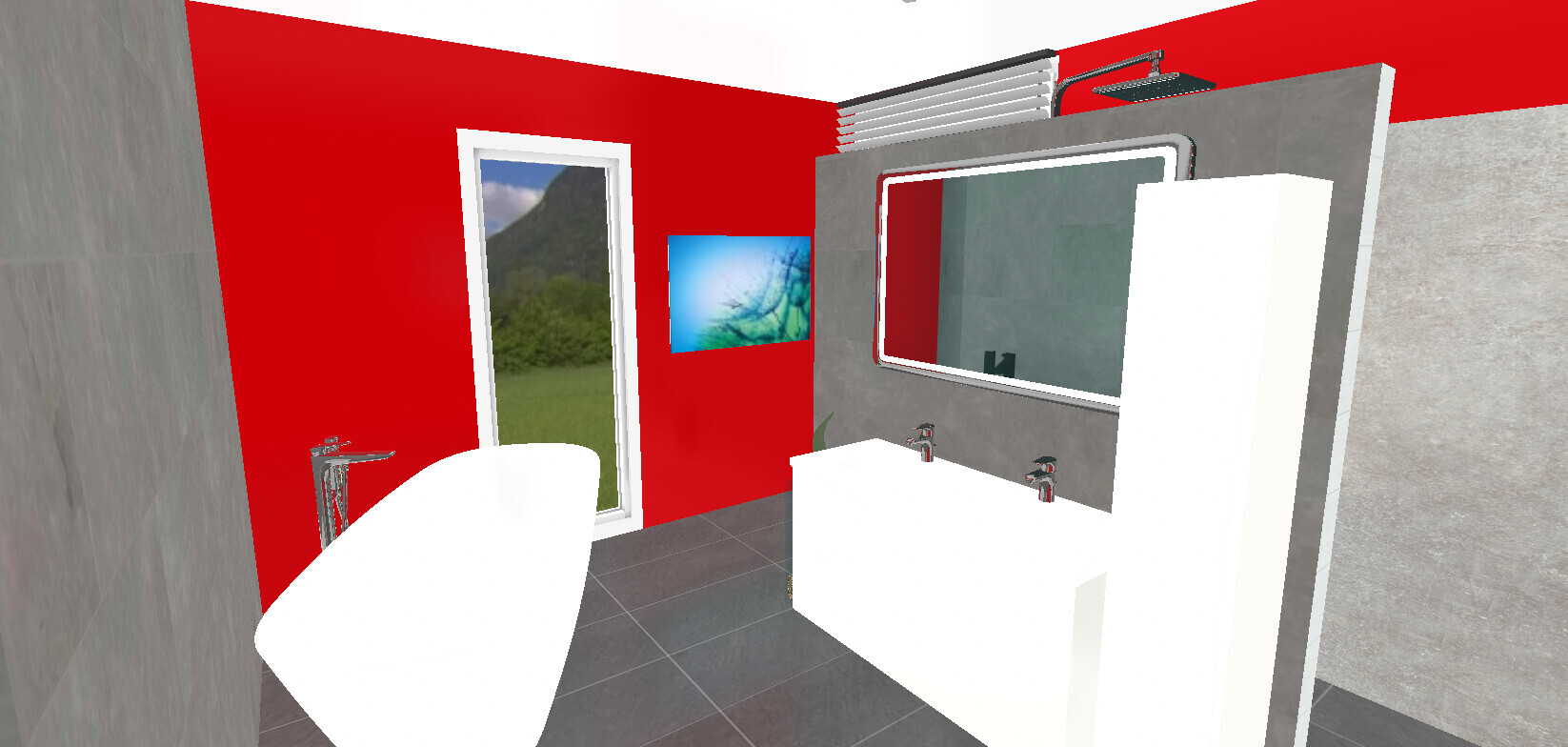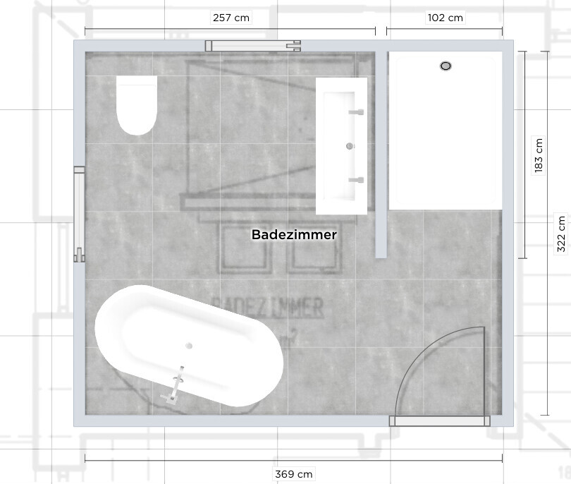 Eine freistehende Wanne sehe ich da auch nicht. Und, wenn die Kinder noch kommen, dann kann das auch unpraktisch sein. Da landet dann auch gerne Wasser hinter der Wanne. Deshalb richtig freistehend, so dass man da hinkommt, oder an der Wand.