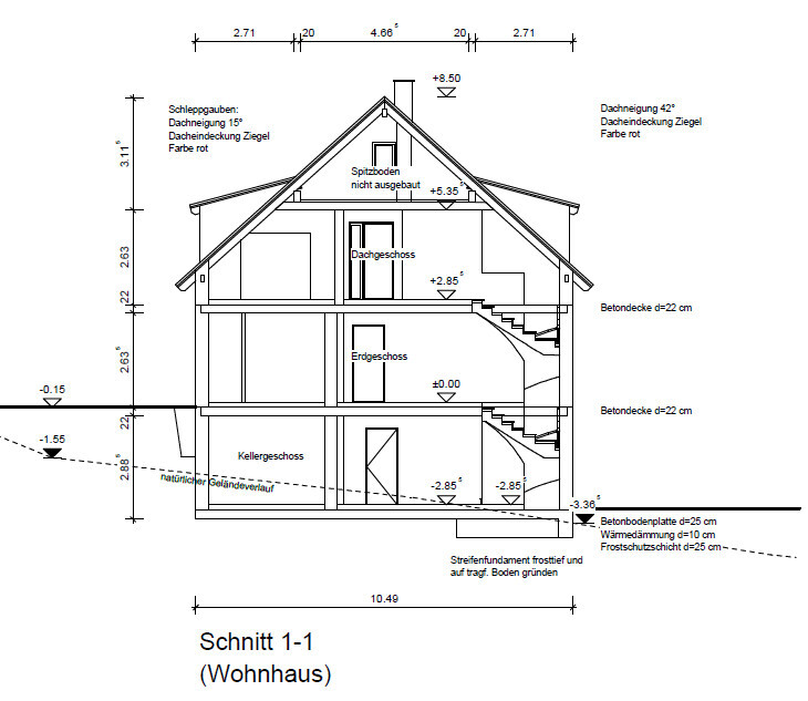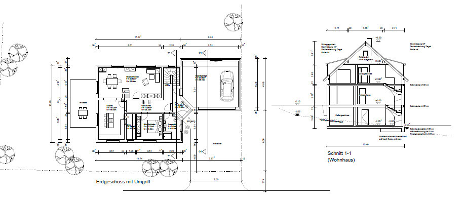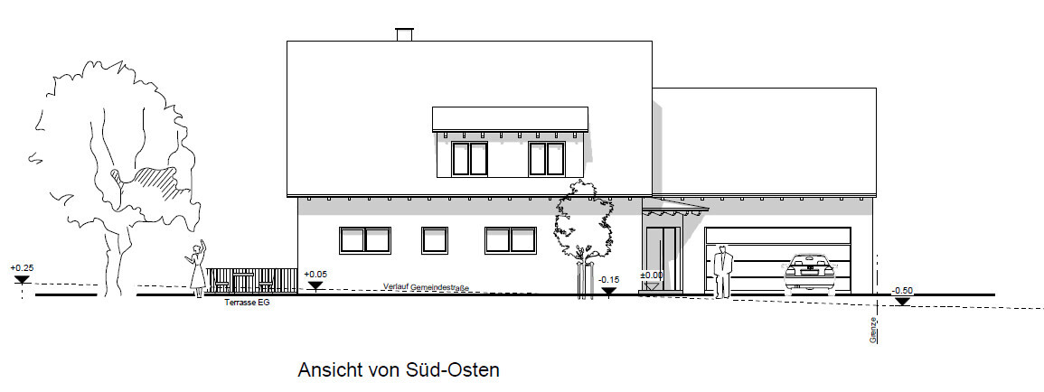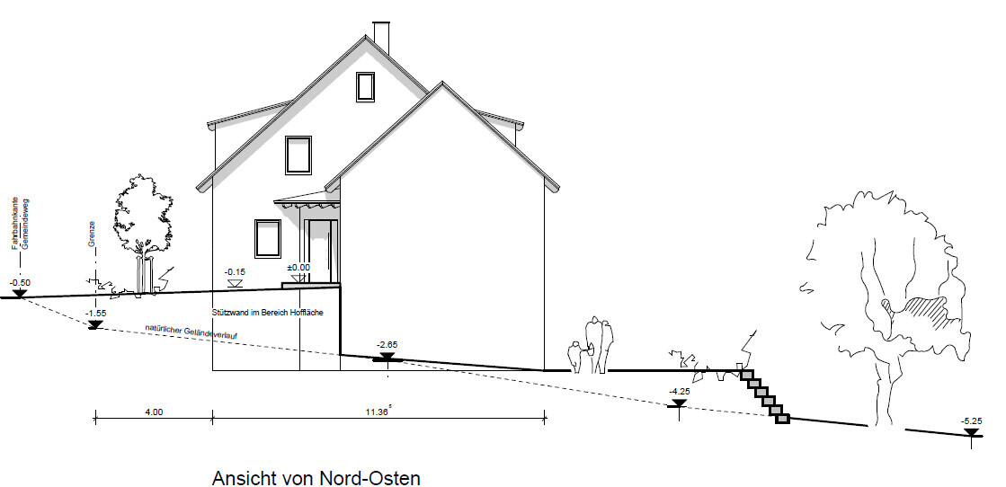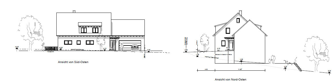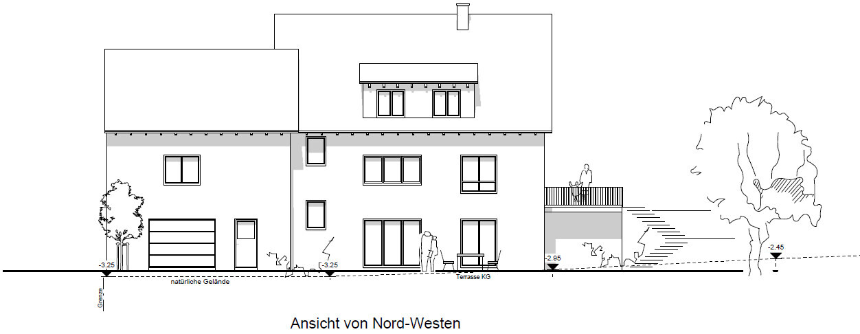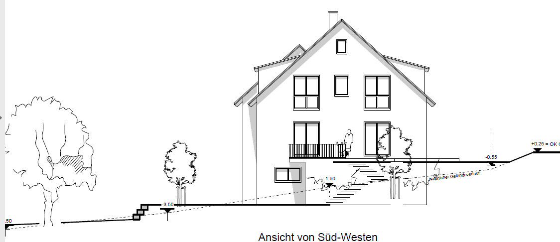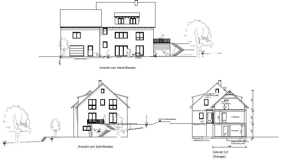 ᐅ Grundriss-Entwurf Einfamilienhaus in Hanglage, Einliegerwohnung, Doppelgarage