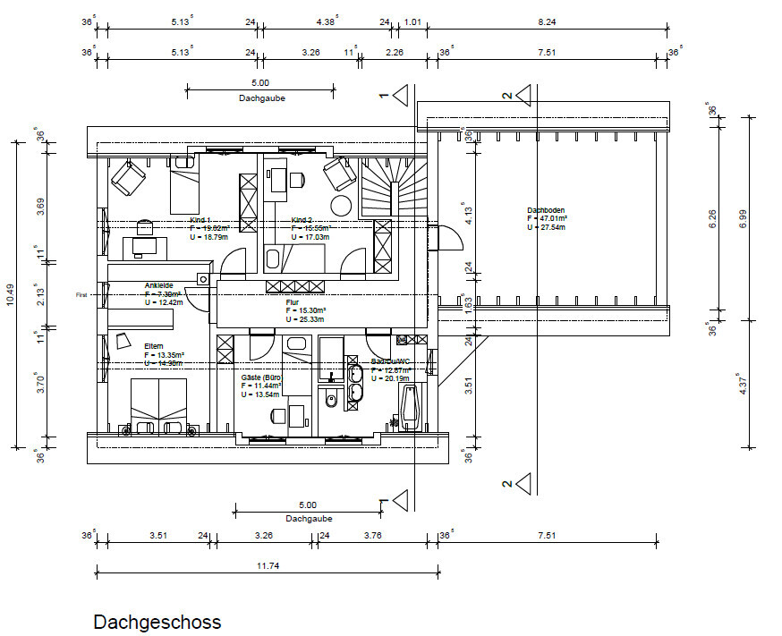 - EG + DG von uns Bewohnt (2 Erwachsene + in den nächsten Jahren Kinder, max. 3)