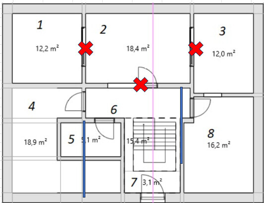Fenster hab ich tatsächlich noch nicht eingezeichnet. Bezüglich offene Gestaltung im Wohn/Ess/Küche habe ich jeweils eine Schiebetüre eingezeichnet. Wir möchten einfach alle drei Räume separat haben falls Gäste kommen.