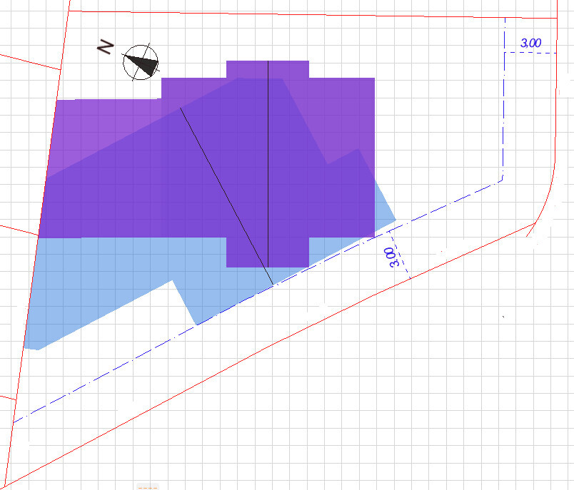 - Stilrichtung, Dachform, Gebäudetyp: Versetztes Pultdach, möglichst gute Ausrichtung für Photovoltaik oder Satteldach