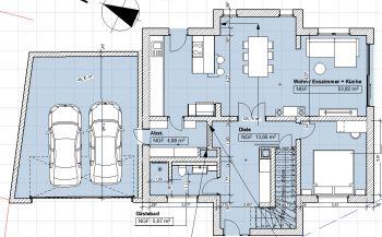 Was auch immer Du hier mit dem Generieren von Blindleistung meinst, ich meine (m.E. selbstverständlich) letzteres, also die Synopse zwischen dem (zudem nach einer längeren Pause) jüngst diskutierten Entwurf (29) mit demjenigen, der zu Threadbeginn gezeigt wurde (1/2). "Nicht für das Grundstück geeignet" wäre ein Grundriss, wenn das Grundstück topographisch einen anderen Grundriss erfordern würde. Paßmängel zwischen Umriss und Baufenster sind meist leicht behebbar, auch wenn es dabei regelmäßig Kratzer an der heiligen Kuh Haus-Garage-Schleuse gibt (die ich bekanntlich ohnehin der Priorität ZZ anempfehle).