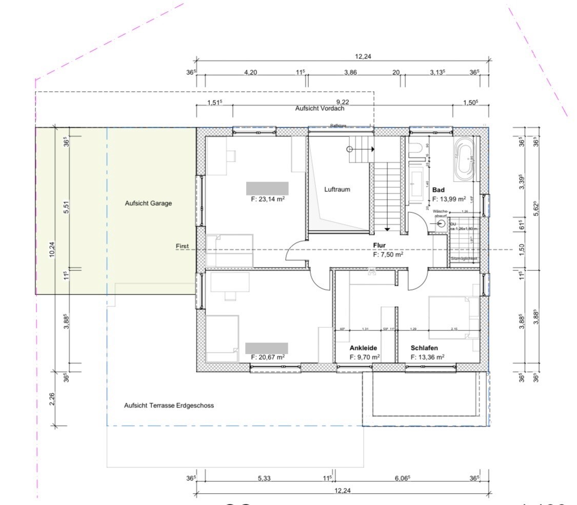 - Was natürlich auffällt, ist der Luftraum über der Diele: der wird den Hall und Schall nach oben tragen wie auch kalte Luft, wenn mal die Haustür aufgemacht wird.