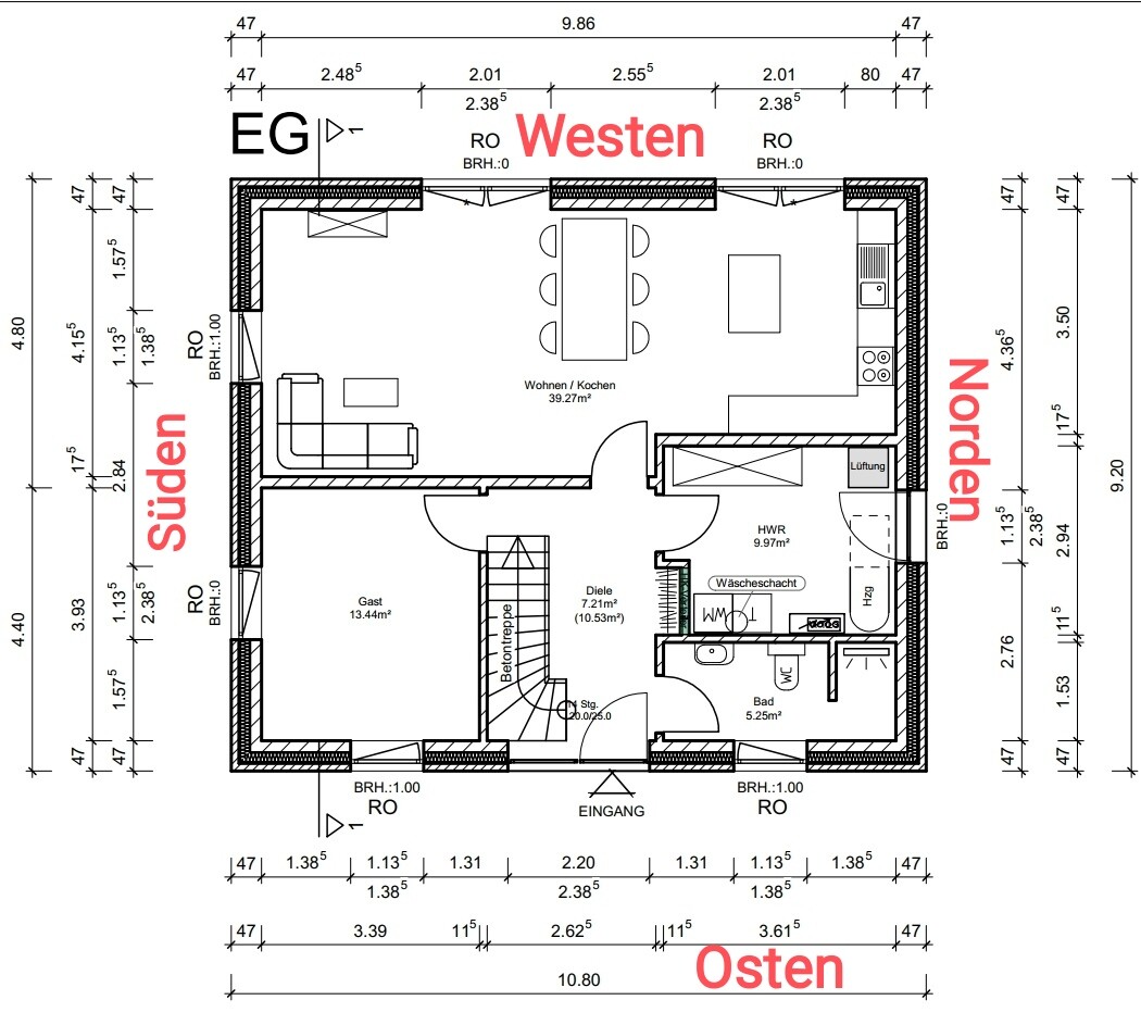 Ist das jetzt alles für den Betrachter verdreht oder sinnig ? Muss ICH MIR DEIN Haus jetzt irgendwie drehen?Die verkehrsberuhigte Straße liegt im Osten. Zum Westen hin ist es unbebaut.