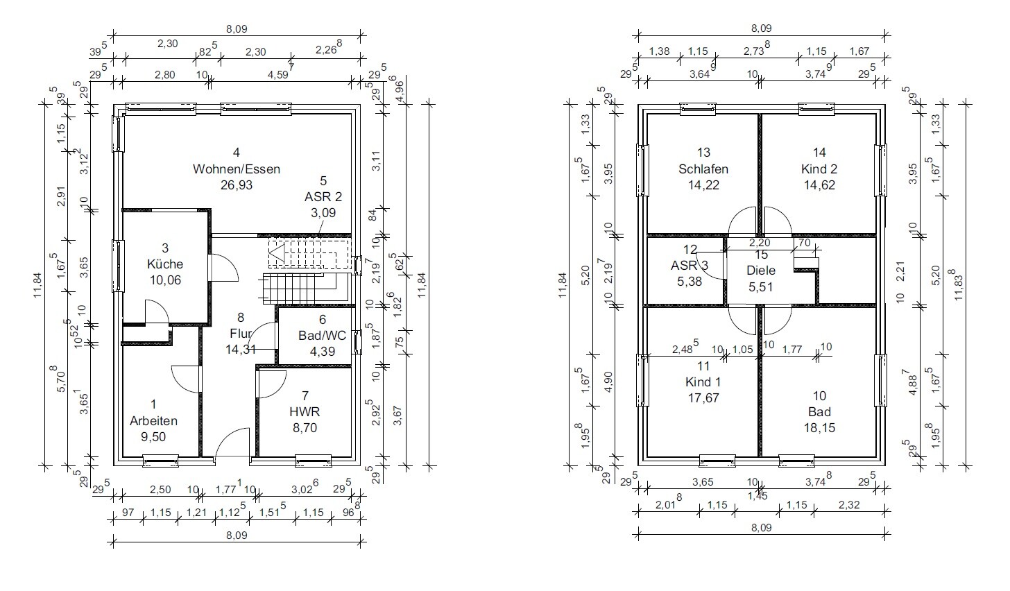 Mir ist da insgesamt nicht recht erkennbar, was Absicht ist und was nur irgendwie so gekommen.Es handelt sich um ein Fertighaus in Holzständerbauweise. Die Maße sind so aufgrund der Rastereinteilung. Wenn ich also das Haus größer machen möchte, wird es in Rastern vergrößert (Pro Raster ca.~67cm?!). Weshalb man hier dann genau auf 8,09m kommt kann ich nicht direkt beantworten, ist entweder einem Programm des Architekten geschuldet oder weil alles noch etwas ungenau gezeichnet wurde.