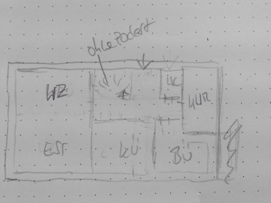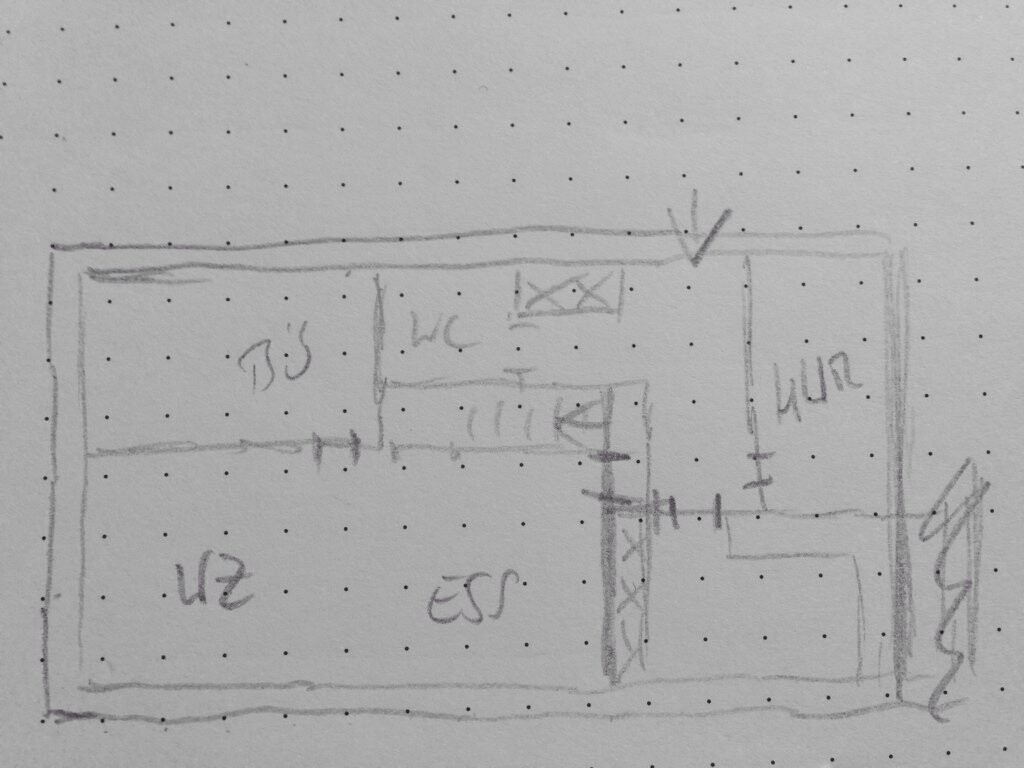 Dass die Speis drinbleibt, ist ein Wunsch von meiner Partnerin. Da wir auch keinen Keller haben und Sie es von früher kennt, muss diese auf jeden Fall rein, auch wenn ich selbst davon überzeugt bin dass über Große Schränke in der Küche das ebenfalls kompensierbar sein könnte.Die Kompensierbarkeit mit Schränken ist bei der kleinen Küche räumlich begrenzt, und bei einer vom Wohnzimmer aus einsehbaren Küche zusätzlich auch aus optischen Gründen. Da will man wohl nicht auf erschlagende Schrankmassen schauen.
