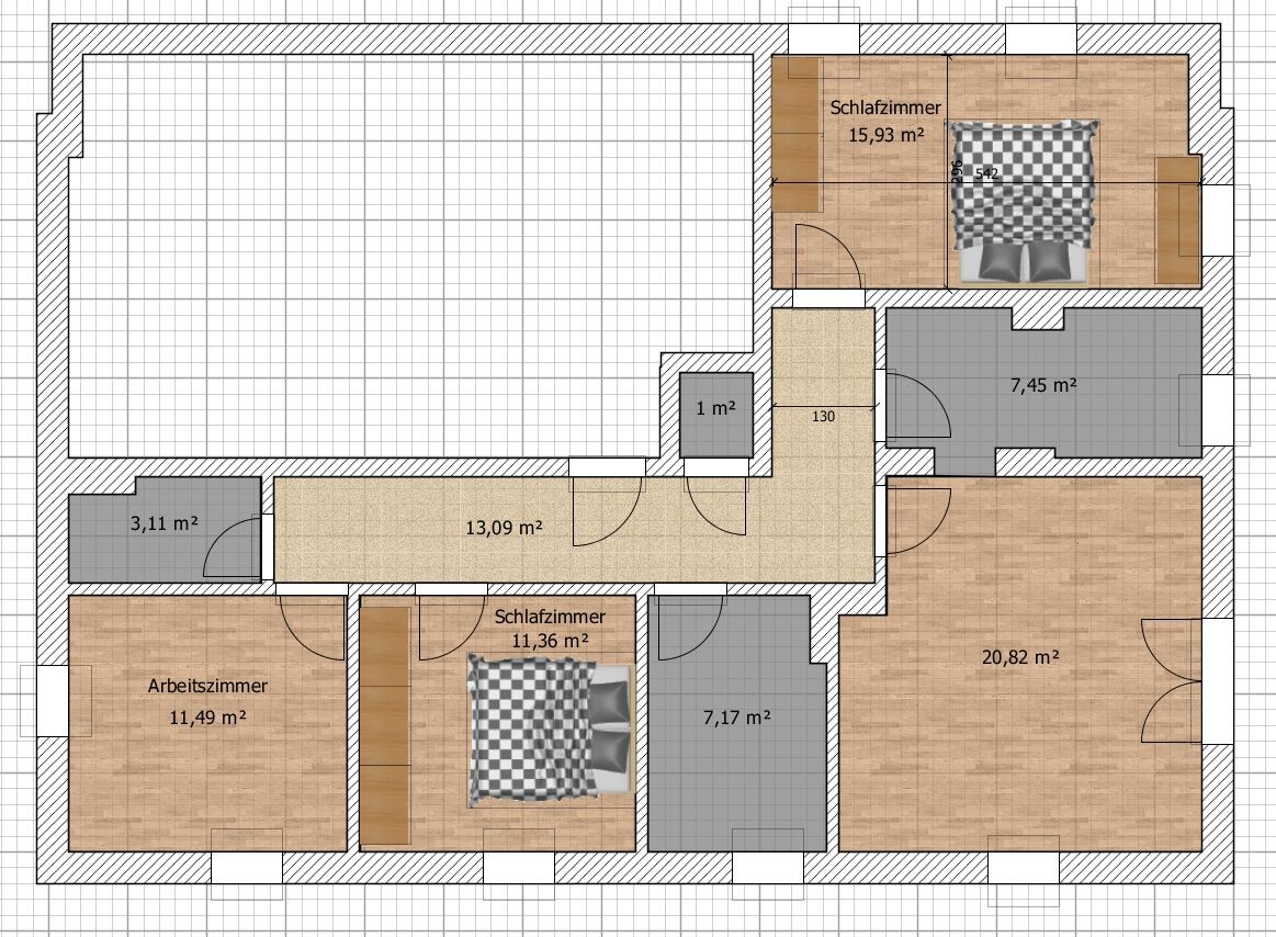 Ich hab gerade mal mit der Variante experimentiert und bekomme in das jetzt größere Zimmer einfach keine vernünftige Schlafzimmereinrichtung. Entweder verstell ich mit dem schrank das Fenster, oder man fällt mit der Tür ins Bett.