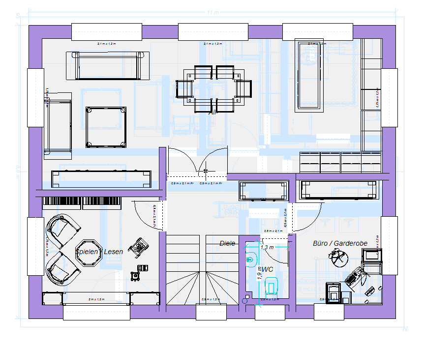 Die Tür zum Allraum soll eigentlich eine Doppelflügeltür werden.Ja, das wirkt immer schön. Aber nicht mit dieser Treppe. Denn dann erschlägst Du den, der aus der Küche ins WZ läuft. Bumm!moooooo32 schrieb: