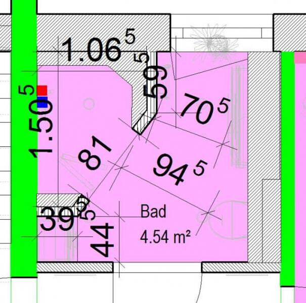 Ich plane ein kleines Schlafzimmer (rechts im Bild) und daneben ein kleines Bad (mittlerer Raum im Bild)