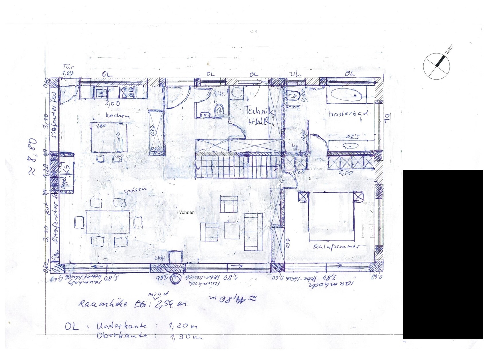 So – habe all Eure Posts gelesen und bedanke mich nochmals ganz herzlich dafür. Viele Gedanken, Stunden und Radiergummis später habe wir jetzt einen geänderten Entwurf erstellt (bzw. meine Frau, während ich Wichtigeres zu tun hatte).