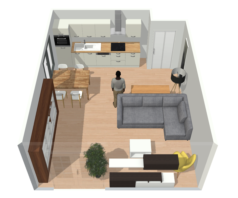 Das müsste jetzt praktikabel sein, auch wenn es natürlich immer noch nicht übermäßig großzügig ist.Naja, eine Kombi aus 3er, 2er und Sessel hat da sicherlich keinen Platz. Den Esstisch kannst Du auch verkleinern. Und den Zugang zum Balkon sehe ich auch nicht.