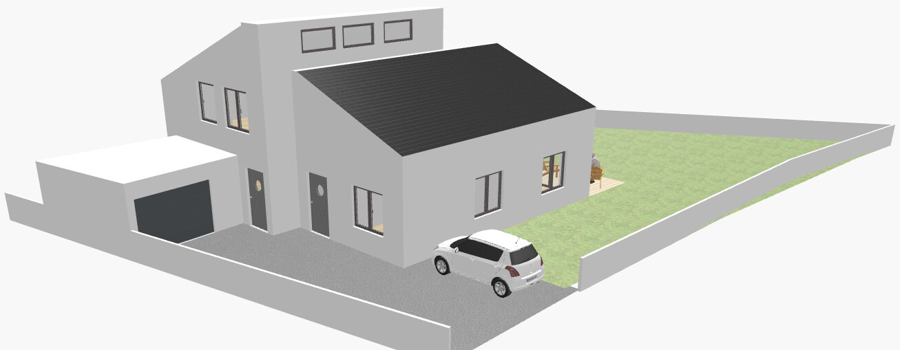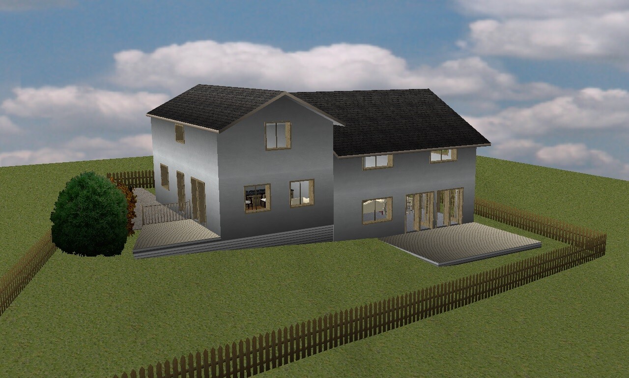 Wenn wir von der Variante ohne Keller kommen, könnte es Katjas Meinung nach so sein, dass wir ein Splitlevel benötigen. In Ihrem Entwurf sind das 4 Stufen = 80cm. Das ist noch immer ein Unterschied. Ist der wirklich so brutal? So könnte das in etwa aussehen.