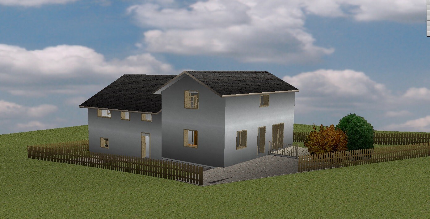 Ich habe mal ein Haus mit 12*12m (geeignet für Einliegerwohnung im EG) ins Grundstück eingezeichnet.