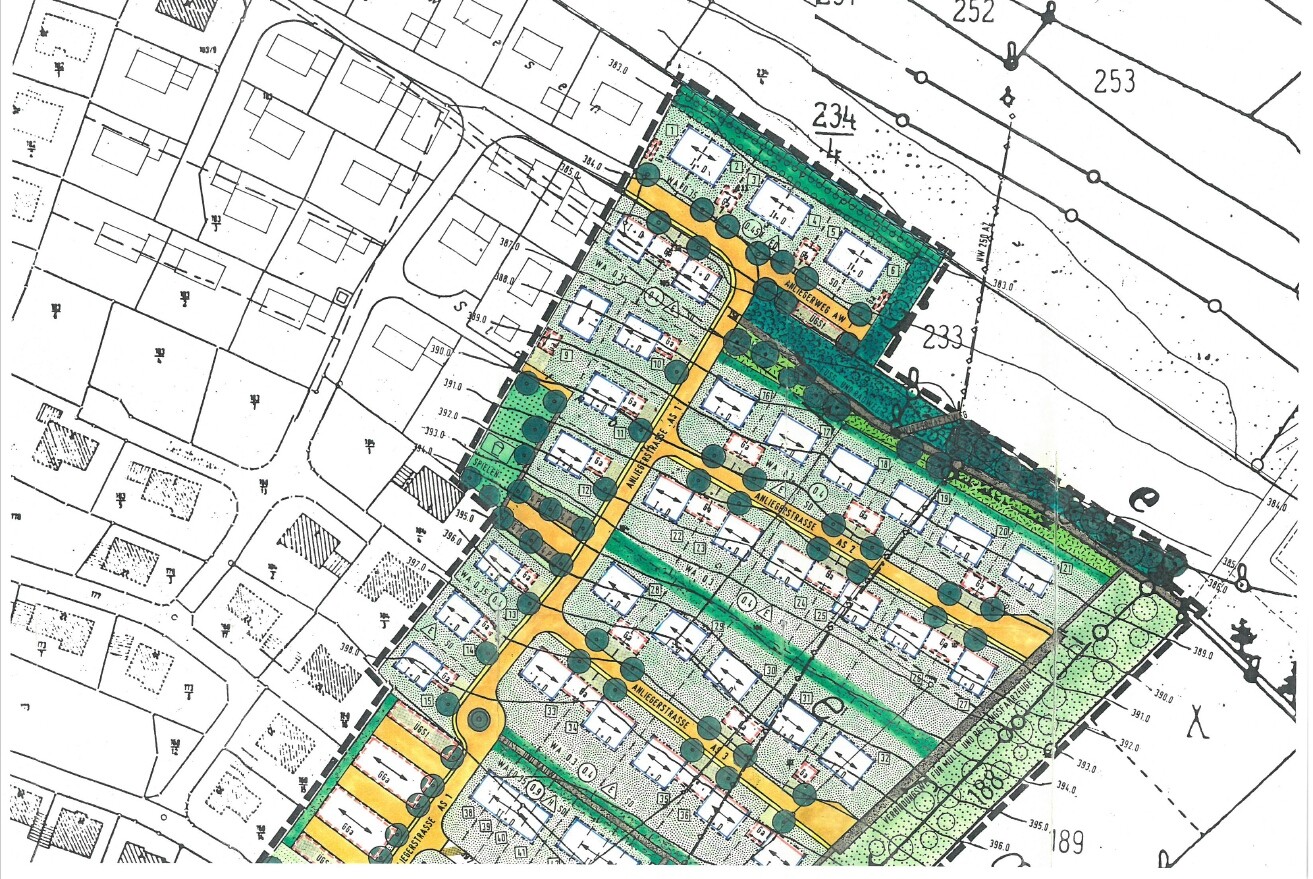 Stilrichtung, Dachform, Gebäudetyp: alles laut Bebauungsplan