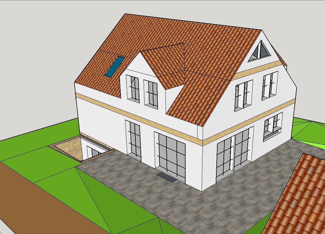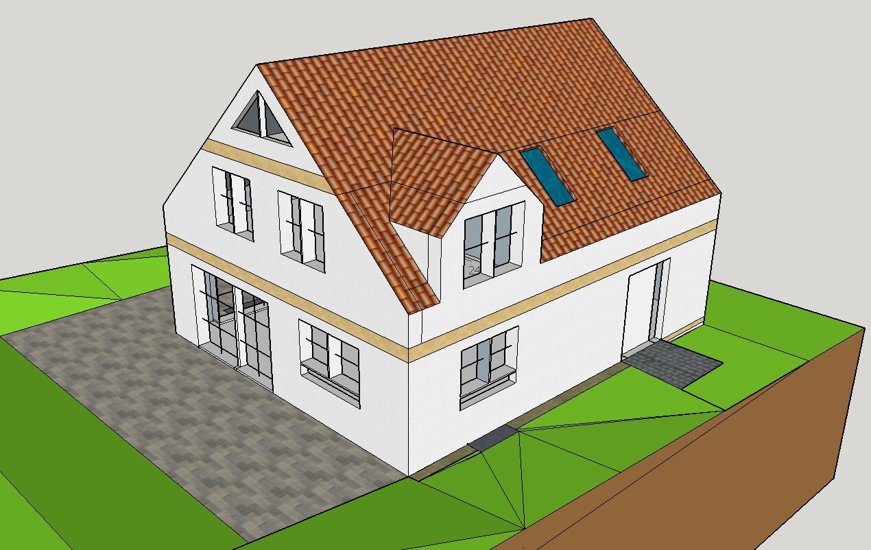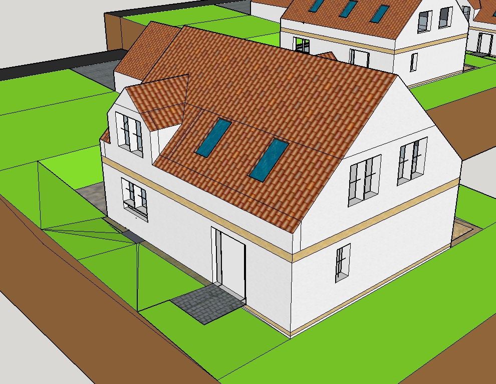 Anbei noch eigene Zeichnungen vom Sketchup / Geländeplan aus dem Bebauungsplan