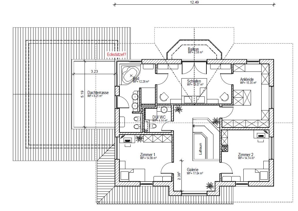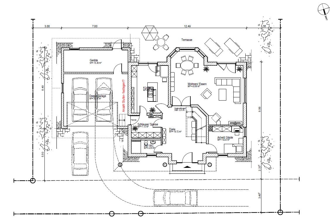 Regina_Matthias22.07.15 11:38Nachdem wir lange hier im Forum mitgelesen und viele Ideen gesammelt haben, ist nun unser erster Vorentwurf fertig. Wir lassen über einen regionalen Bauunternehmer bauen. Den Entwurf stammt vom Architekten des Bauunternehmers.
