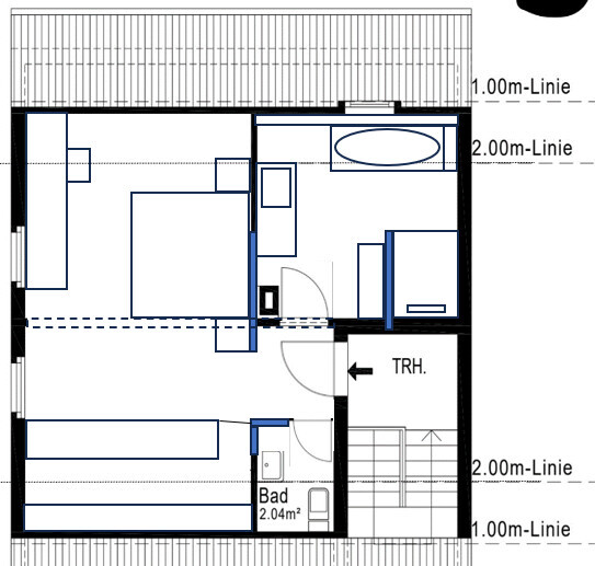 Als Einliegerwohnung kann das DG eh nicht dienen, insofern bin ich fast bei Version. Ich würde das ganze als Familienbad einrichten, Büro kann ins kleinere Schlafzimmer.Vielen Dank für die ausführliche Antwort!