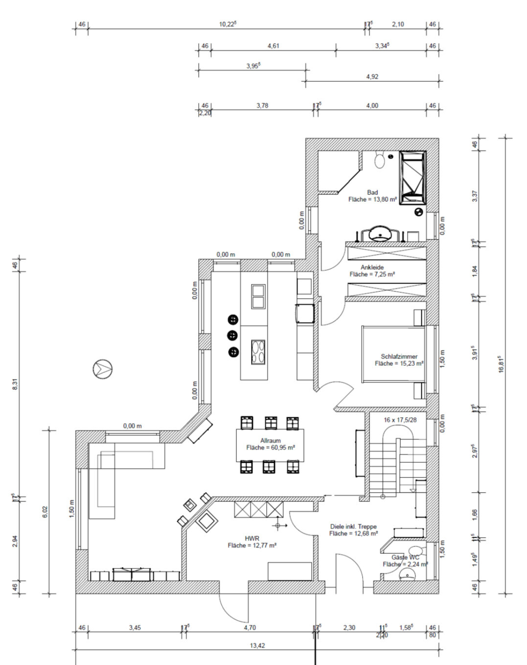 Was gefällt nicht? Warum? Passt die Treppe? Ist der Eingang großzügig genug? Kann man die privaten Räume im EG so anordnen?