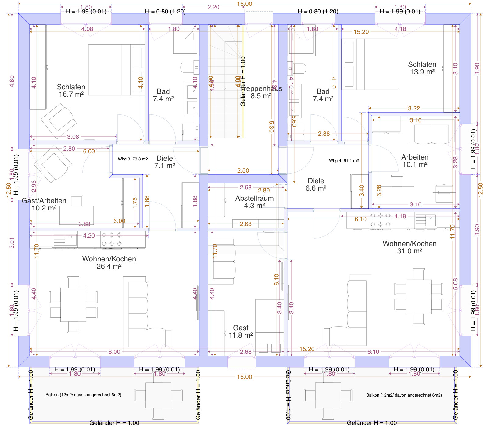 ᐅ Grundriss Mehrfamilienhaus mit 4 Wohneinheiten
