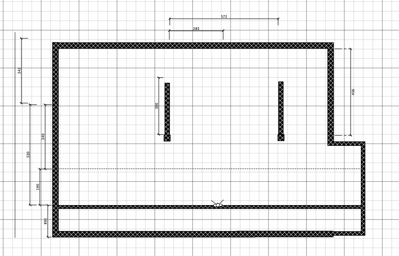 Ich habe unten mal etwas herumgespielt, bin aber jetzt dabei, von oben die Wände nach unten einzubeziehen... das sieht dann natürlich unten etwas anders aus, dennoch will ich Dir die Idee nicht vorenthalten.