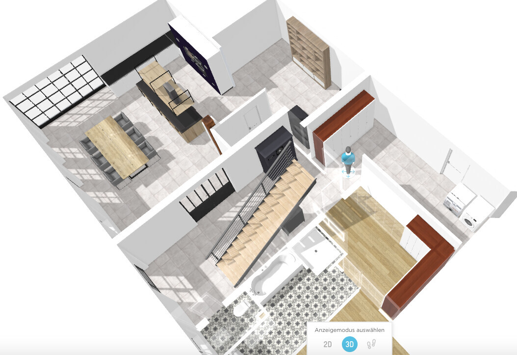 Ich habe noch eine Idee bekommen, nachdem ich eine Treppe da hinten im Flur ganz unpassend fand. Auch leidet dann die Chilllounge in Größe, und der Hauswirtschaftsraum wäre auch nicht mehr so großzügig.