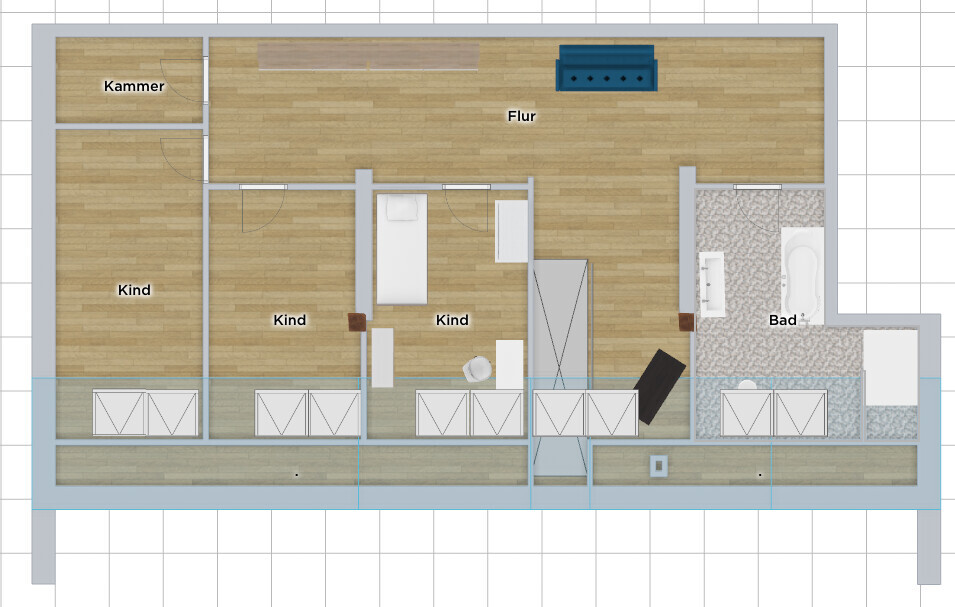 Grundriss einer Wohnung mit Flur, Bad, drei Kinderzimmern und Kammer.