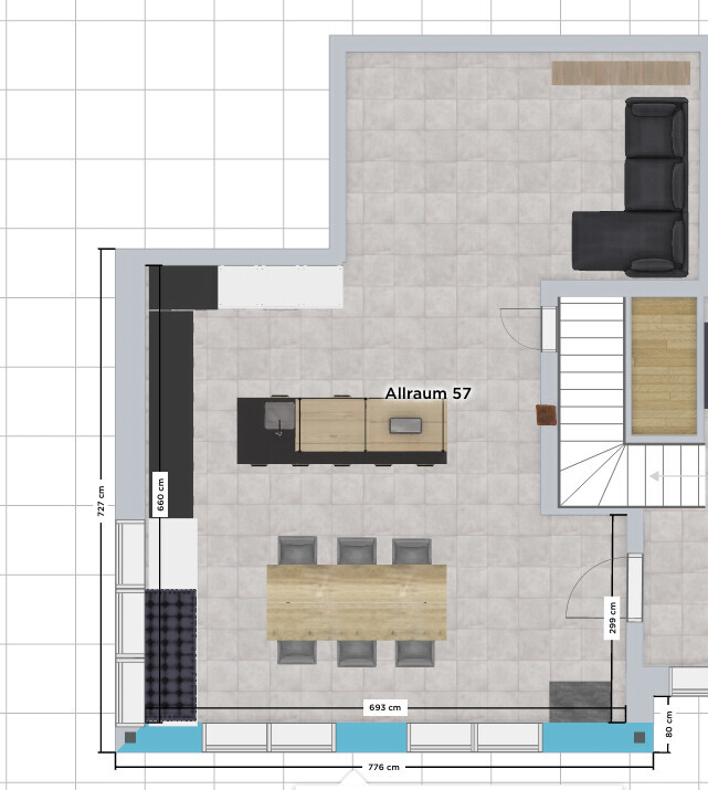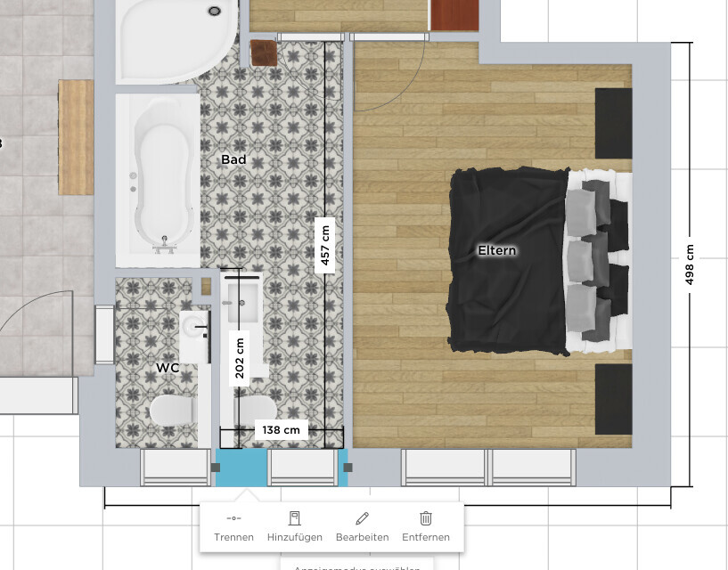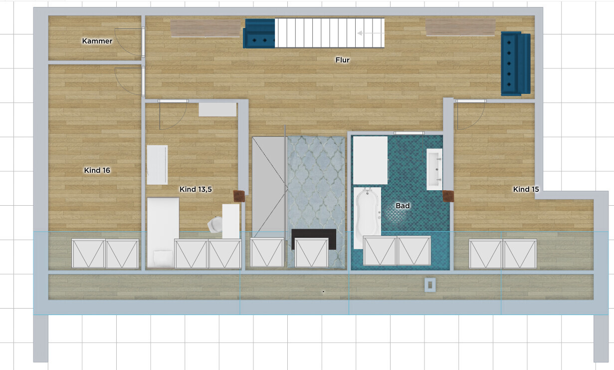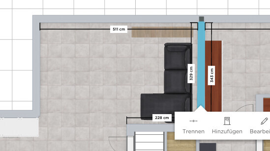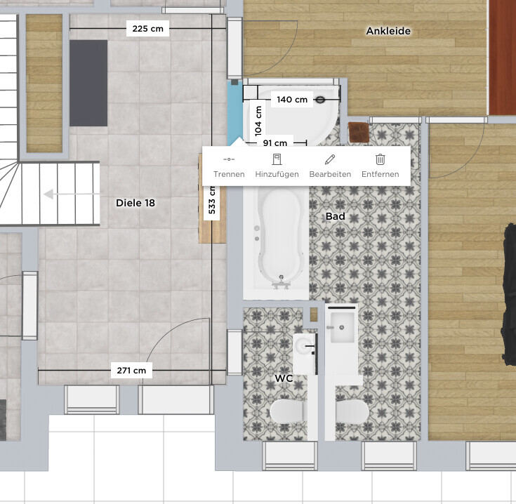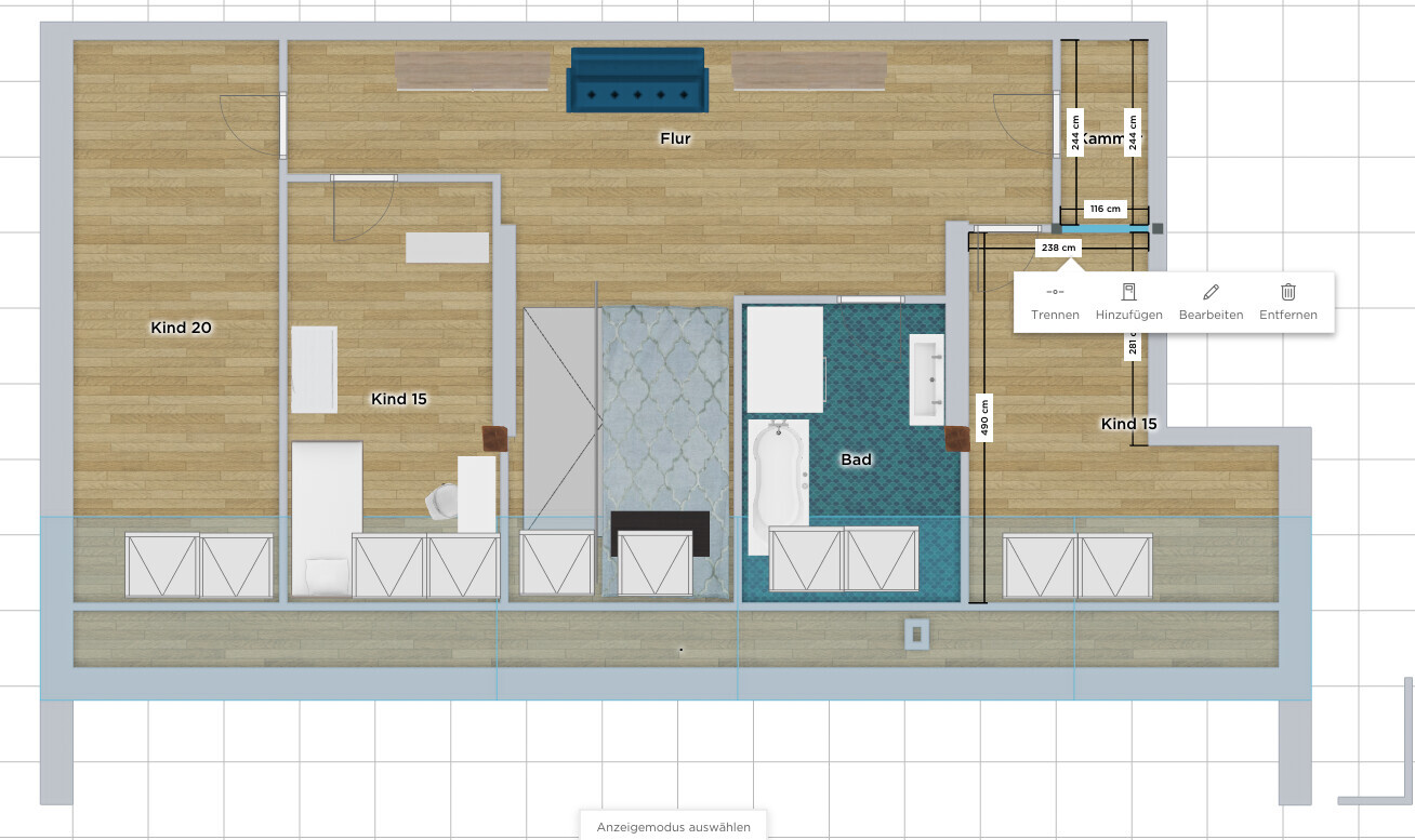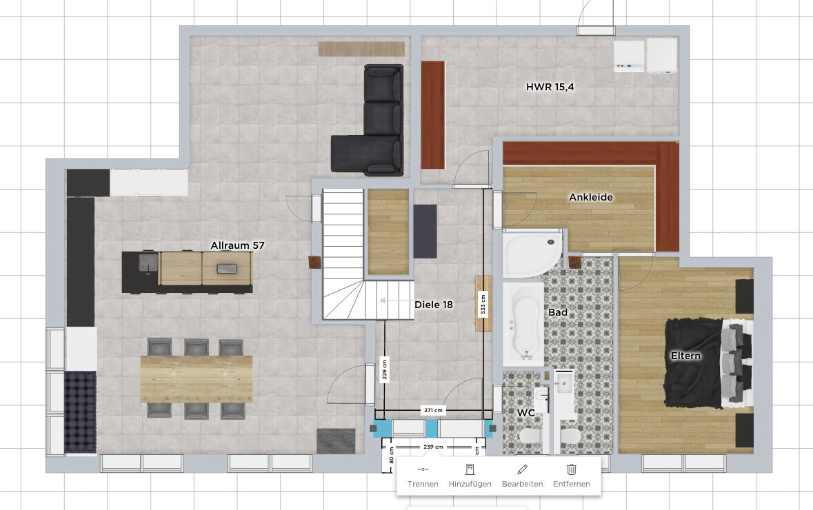 Habe ich mal realisiert - im Screenshot die anderen Änderungen (Bad, Speis, Diele) gleich mit: