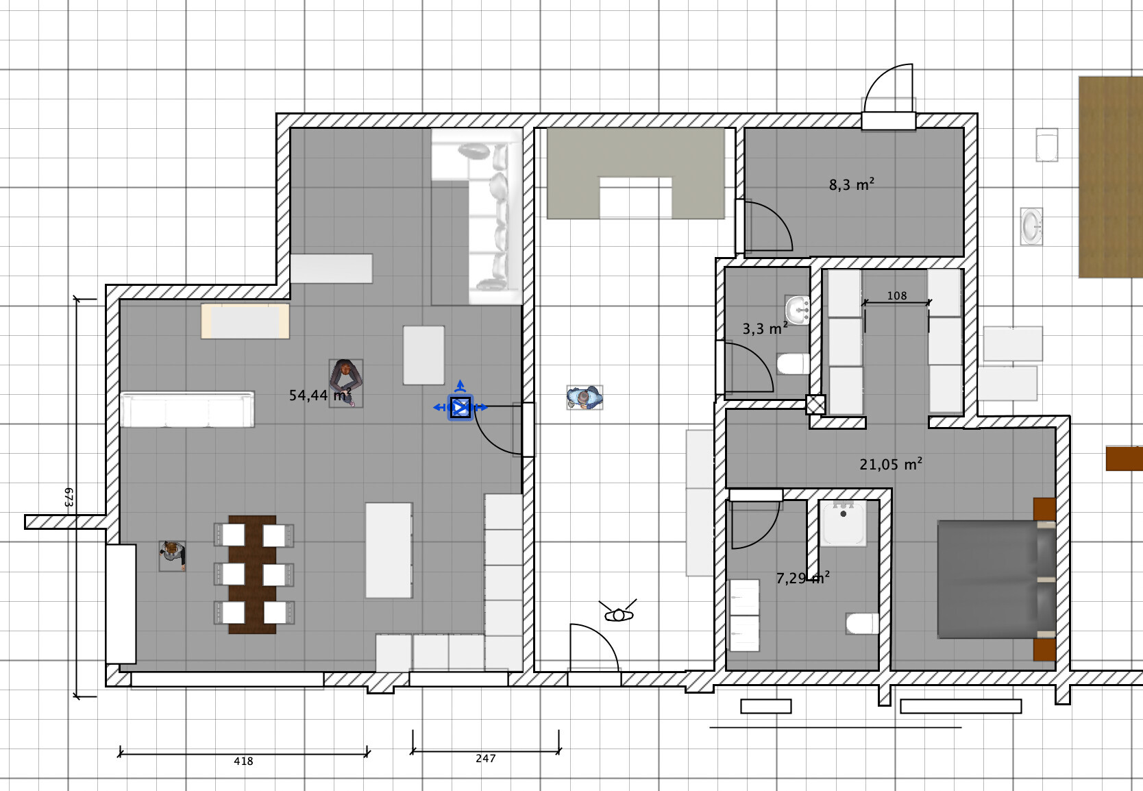 Beim Elterntrakt ist das im Prinzip ok von der Grundidee, einzig ist mir das Badezimmer zu klein. Größer wäre schöner.