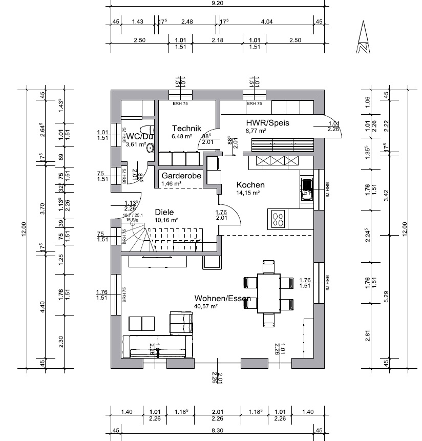 Jochen10410.06.15 20:31Ich habs jetzt wegen der ganzen Treppen- und Saugdiskussion nicht mehr im Kopf, aber ich frage mich ob du die Speis wirklich brauchst. Ich würde den Platz dem Hauswirtschaftsraum zuschlagen und lieber die Küche etwas größer gestalten.