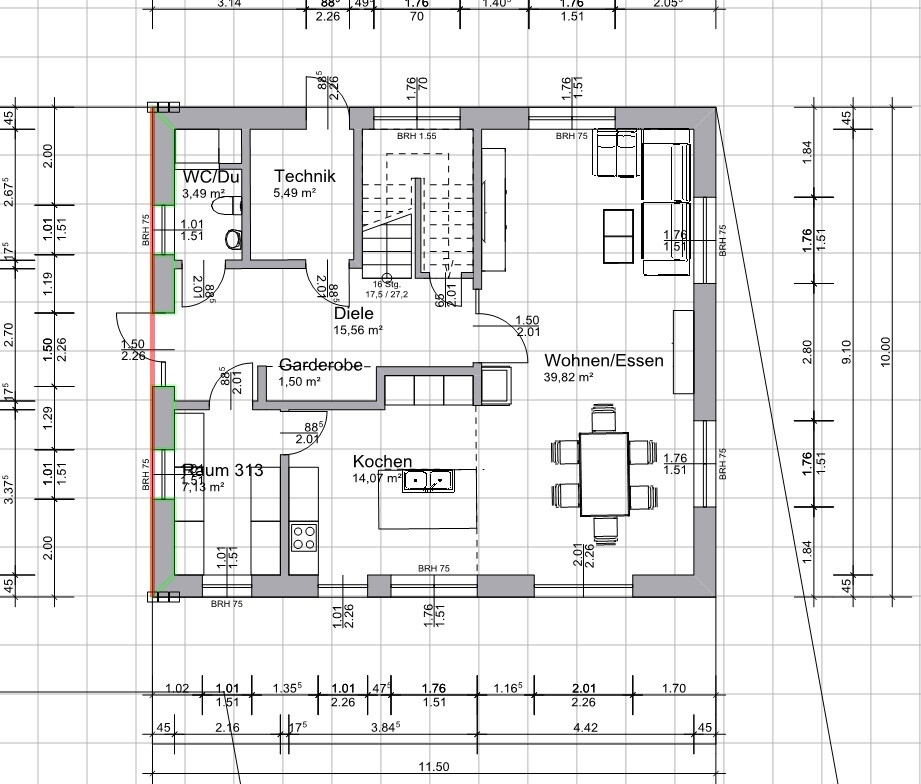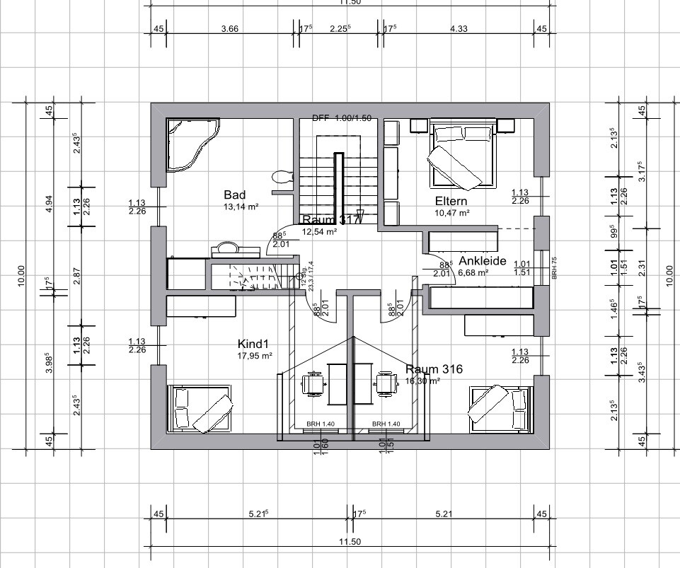 Ich würde, hab ich damals vergessen, oben 2 Meter breite Fenster mit Brüstung nehmen. In der Breite kommt in die Zimmer mehr Licht.