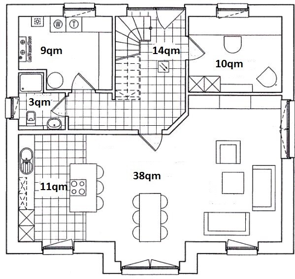 Anbei der in etwa geplante Grundriss vom EG.