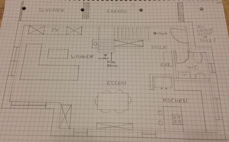 anbei einer der ersten Versuche von mir, einen Grundriss für das zu bauende Haus zu zeichnen.